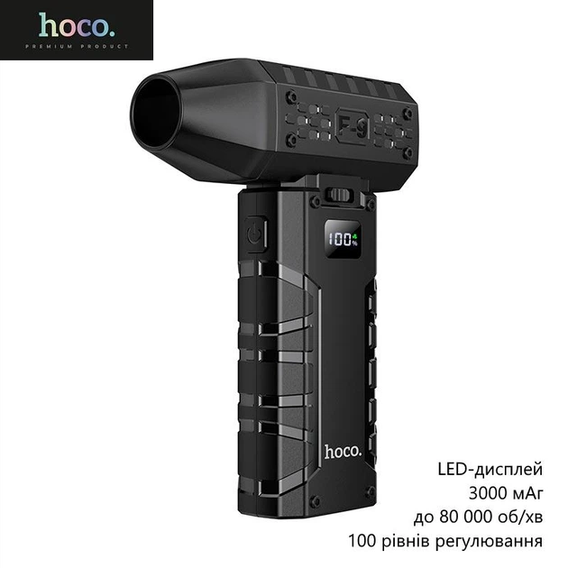 Турбо вентилятор Hoco HX67 (Type-C, ручний, 100 рівнів регулювання, 52м/с, LED-дисплей, 3000 мАг, турбовентилятор) - Чорний