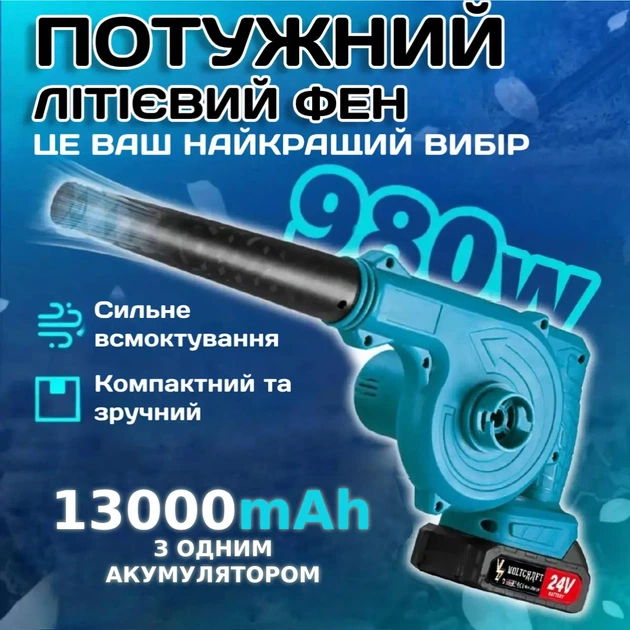 Повітродувка акумуляторна 24V 2Ah Садовий пилосос-повітряний акумулятор для збирання листя й прибирання