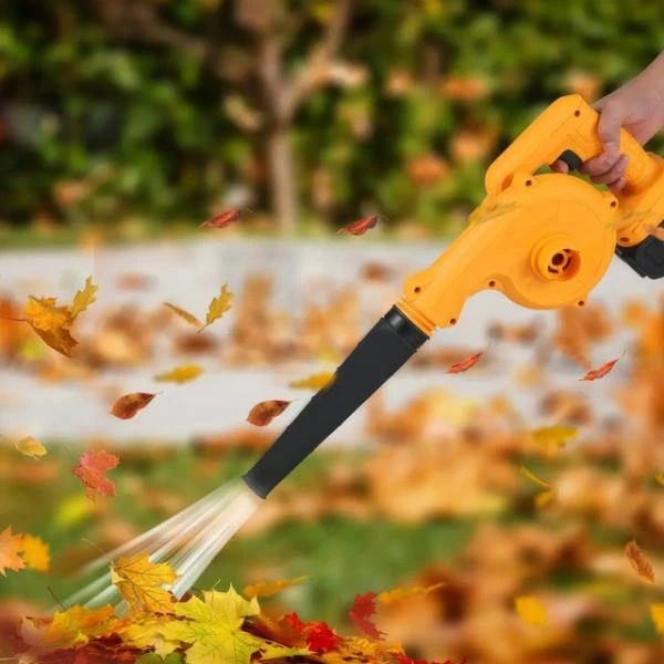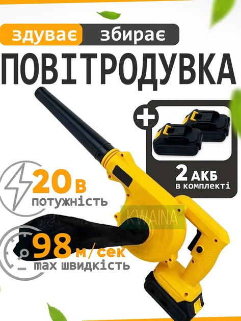 Повітродувка-пилосос акумуляторна садова, портативний садовий пилосос з двома акумуляторами, жовтий
