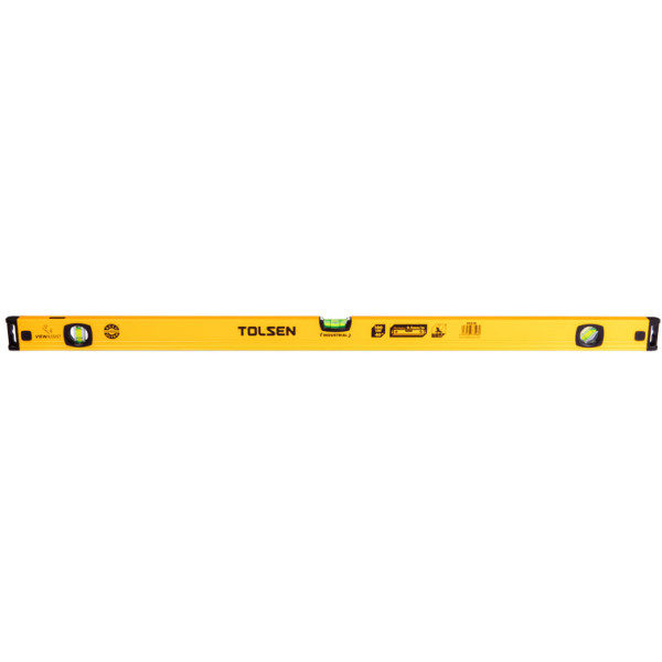 Рівень довжиною 80 см – вимірювальний інструмент, призначений для перевірки горизонталі та вертикалі різних поверхонь. Застосовується на всіх етапах будівельних робіт: при підготовці фундаменту, вирівнюванні свіжої кладки, штукатурці стін або укладанні підлогового покриття. Конструкція Інструмент вимірювання являє собою алюмінієвий профіль прямокутної форми товщиною 1 мм, який характеризується міцністю та стійкістю до корозії. Основним робочим елементом конструкції є 3 прозорі капсули, наповнені рідиною.