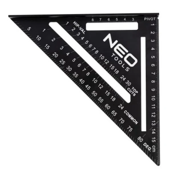 жина/120 мм|Бренд/Neo Tools|Особливості, додаткові характеристики/ - Угловая линейка с 6 регулируемыми рычагами; - шаблон отверстий из АБС-пластика; - размеры отверстий в шаблоне: 2,5 см, 4 см и 4,5 см; - замыкание с помощью рифленых ручек.