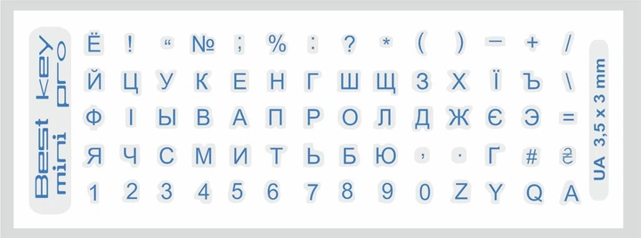 Наліпка на клавіатуру універсальні вінілові Best Key mini PRO матова прозора БЛАКИТНИМИ, 70 кл.