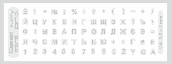 Наліпка на клавіатуру універсальні вінілові Best Key mini PRO матова прозора БІЛА, 70 кл.