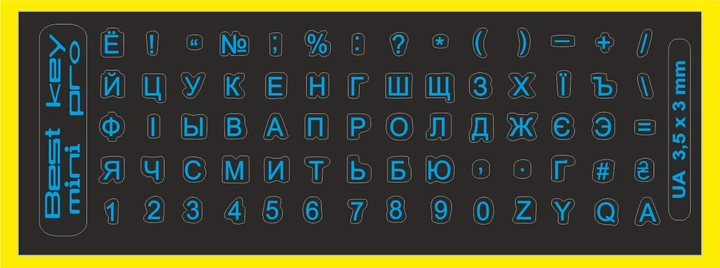 Наліпка на клавіатуру універсальні вінілові Best Key mini PRO матова чорна не прозора БЛАКИТНА, 70 кл.