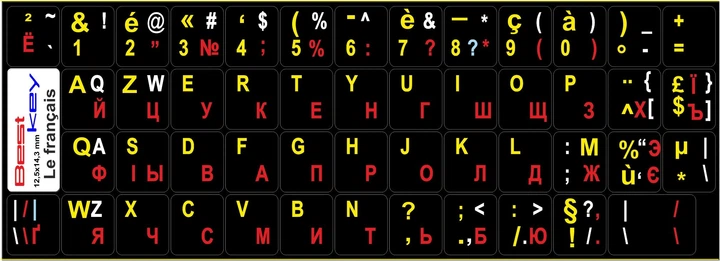 Нестираємі наліпки Франція, FR\EN\UA\RU на клавіатуру Best Key матова ламінована непрозора, 49 кл.