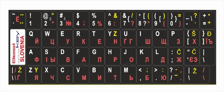 Нестираємі наліпки Словенія, SLV\EN\UA\RU на клавіатуру Best Key матова ламінована непрозора, 49 кл.