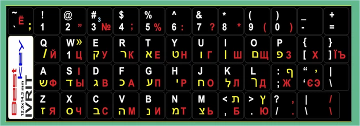 Нестираємі наліпки Іврит, \EN\UA\RU на клавіатуру Best Key матова ламінована непрозора, 49 кл.