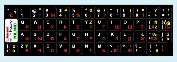 Нестираємі наліпки Польша, PL\EN\UA\RU на клавіатуру Best Key матова ламінована непрозора, 49 кл.