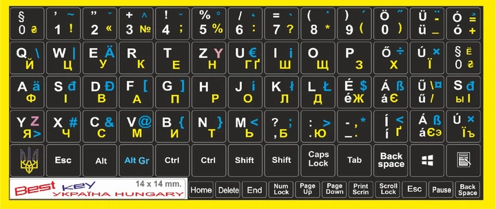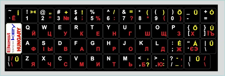 Нестираємі наліпки Угорські, HUN\EN\UA\RU на клавіатуру Best Key матова ламінована непрозора, 75 кл.