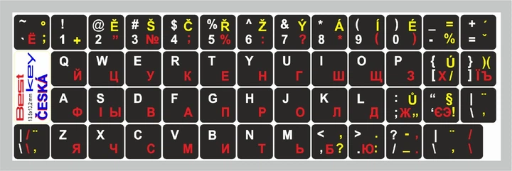Нестираємі наліпкиЧехія, CES\EN\UA\RU на клавіатуру Best Key матова ламінована непрозора, 49 кл.