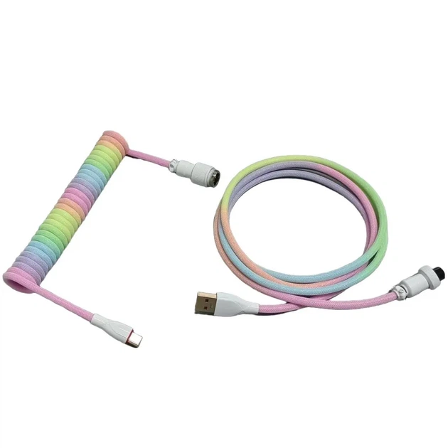 Кастомний кабель для клавіатури авіатор (спіральний кабель) (Type-C) Веселка