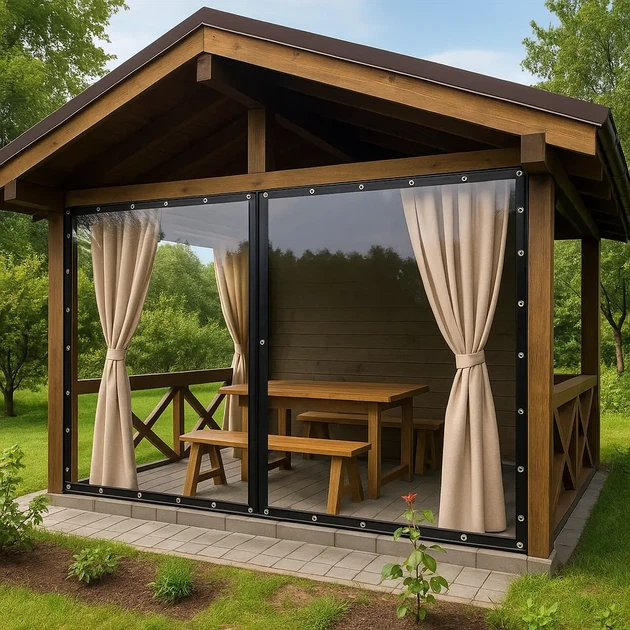 Прозорий ПВХ-тент для бесідки/веранди/тераси (2,2х 1,5м).