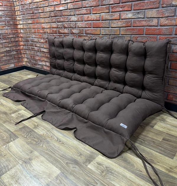 Подушка для садової гойдалки з рюшею панама 100х50х50 см коричнева