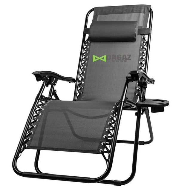 Розкладне крісло-шезлонг LEOBRO Zero Gravity Black 173x64x110 см до 120 кг з підголівником та тримачем для туризму відпочинк
