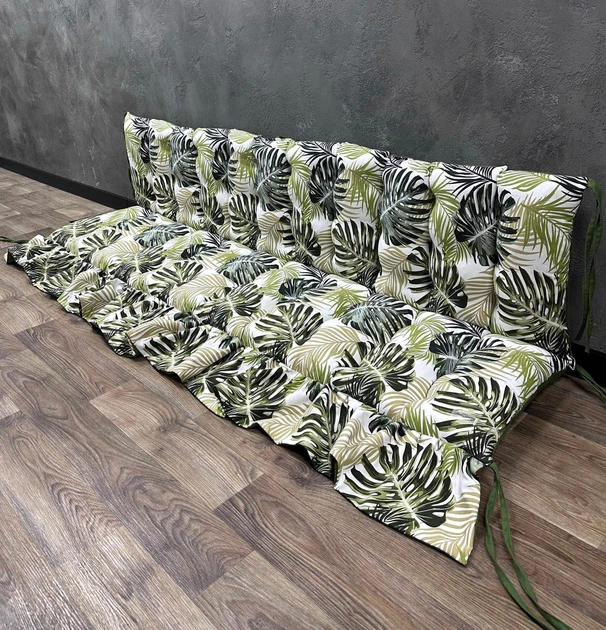 Подушка для садової гойдалки Tropical leaves з рюшею 100х50х50 см зелена