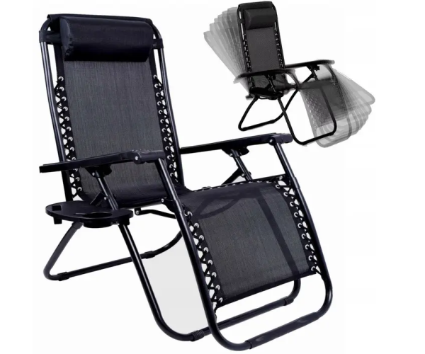 Садовий шезлонг розкладний тканинний Garden Premium чорний лежак розкладне крісло