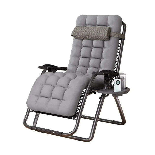 Крісло-шезлонг садове Zero Gravity WCG R-03 з підголівником і підставкою для напоїв, чорний, навантаження 120 кг
