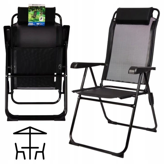 Комплект розкладних крісел з підлокітниками, садові стільці, стільці для кемпінгу, регульовані шезлонги Lidl 2 шт Чорний