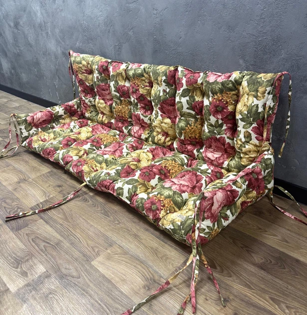 Подушка з бортами на садові меблі Autumn flowers панама 100х50х50х20 см бордова