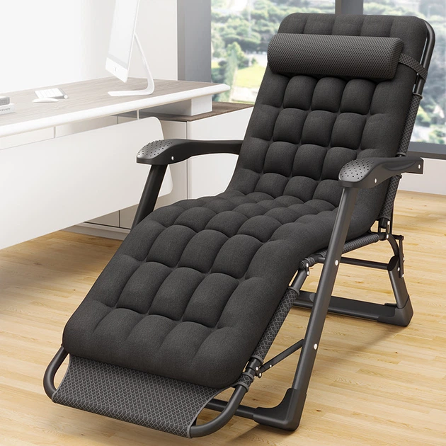 Крісло-шезлонг розкладне садове WCG FCB-S06PP з подушкою та матрацом, чорний, 1786630 см, навантаження 150 кг