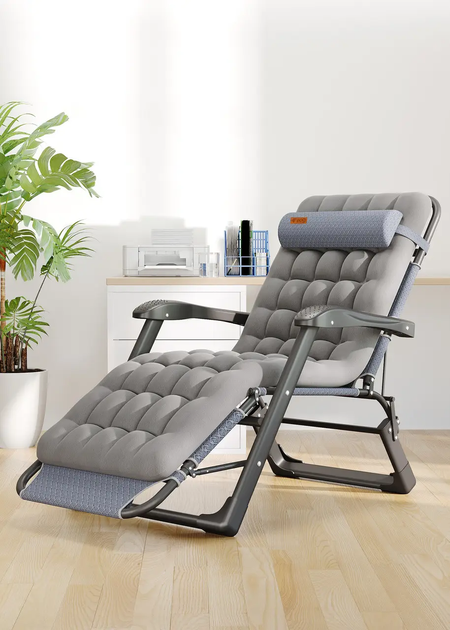 Крісло-шезлонг розкладне садове WCG FCB-S01PP з подушкою та матрацом, сірий, 1786630 см, навантаження 150 кг