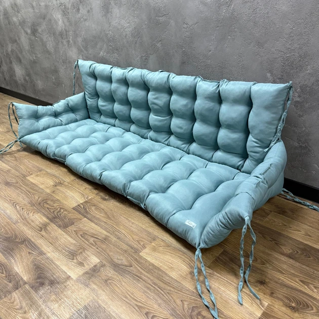 Подушка з бортами на садові меблі габардин 150х50х50х20 см блакитна
