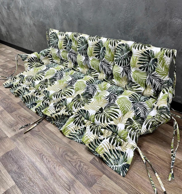 Подушка для садової гойдалки з бортами та рюшею Tropical leaves 100х50х50х20 см зелена