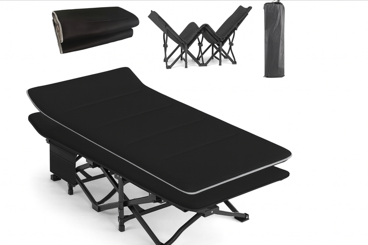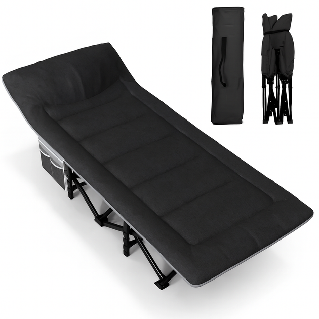 Розкладне ліжко (розкладачка) з матрацом і подушкою LEOBRO Black (LB-FB-A1-BLK)
