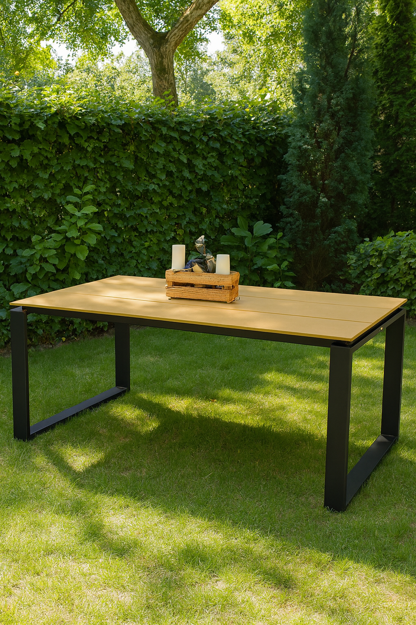 Уявіть собі літній вечір у вашому саду або на терасі, де ви збираєтеся з рідними або друзями за стильним і зручним обіднім столом. Прямокутний стіл від Di Volio — це ідеальне рішення для створення функціонального та стильного простору для відпочинку на свіжому повітрі. Поєднання мінімалістського сучасного дизайну з традиційними елементами сільських меблів робить його