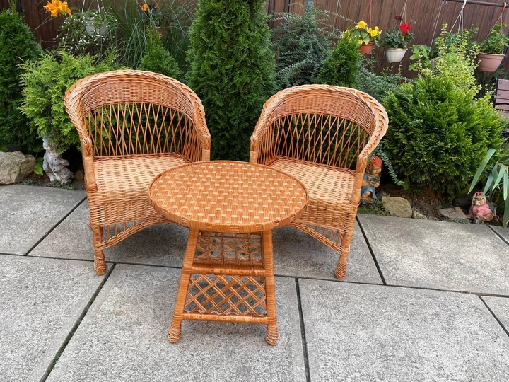 Набір плетених меблів зі лози низькі крісла та стіл круглим