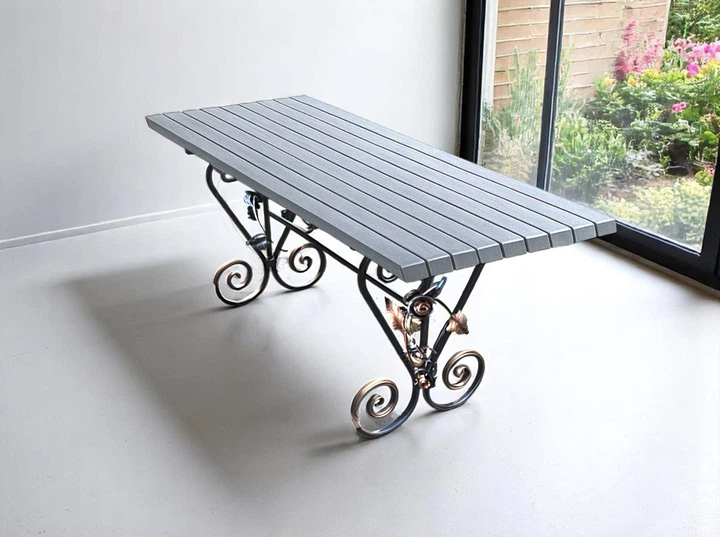 Стіл кований садовий Камелія для дачі, тераси, альтанки 2000х700х800 мм, колір Антрацит
