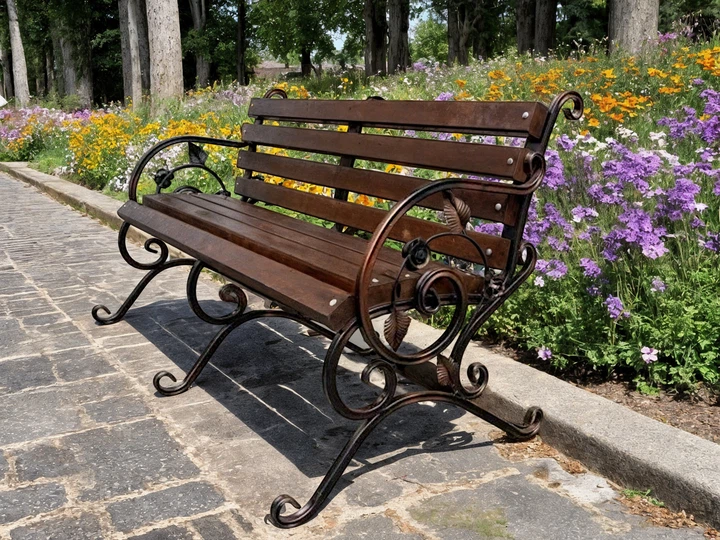 Лавка садова кована Tobi Sho Камелія з підлокітниками 200 см колір горіх