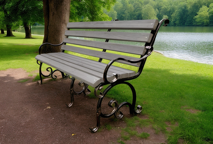 Лавка без спинки паркова садова "КОСУХА" 1700х400х450 мм чорний Kompred OL758