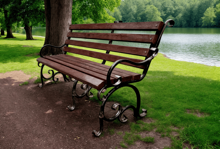 Лавка садова кована Tobi Sho Дольче з підлокітниками для дачі, тераси 300 см колір махагоній