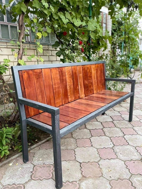 Лавка лофт зі спинкою та столиком-підлокітниками 300 см колір горіх