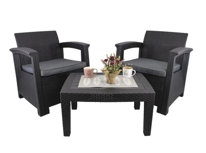 Набір садових меблів штучний чорний ротанг. М'які меблі Garden Line BERNY для дачі, саду та тераси