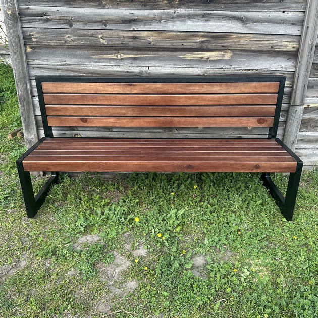 Лавка паркова Лофт зі спинкою дерев'яна до 200 кг Коричнева з чорним (14-17-LF-LVK-LOFT-SPK)