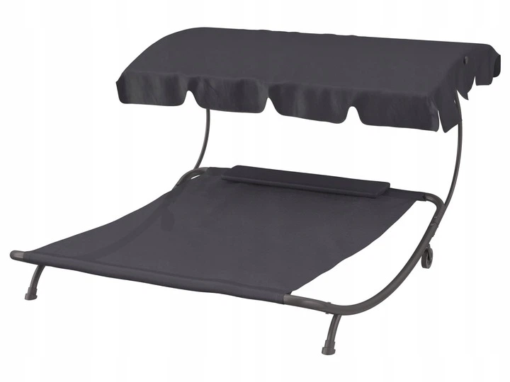 Лежак садовий з регульованим навісом, двомісний, чорний HG04786