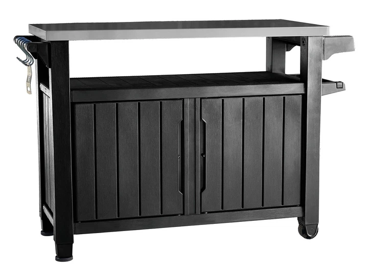 Стіл-буфет для барбекю Keter антрацит 207 л садовий столик для зберігання та приготування їжі (533963)