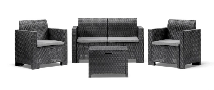 Набір садових меблів BICA Nebraska 2 графіт крісла диван для дачі та тераси стіл-скринька (533971)
