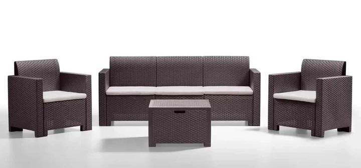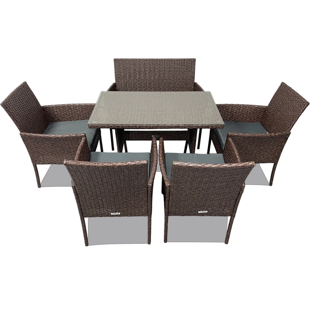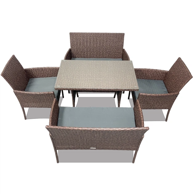 Садовий набір меблів Lounge Loft Обідній з ротангу 2 диванчика 2 Крісла та Стіл Темно-коричневий 107 Brown