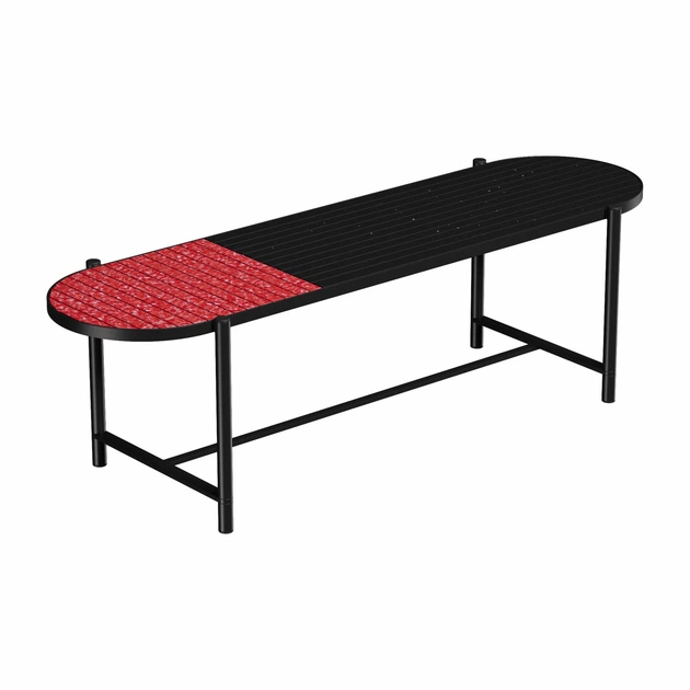 Лавка дизайнерська для тераси Recast Plastic овальна червоно-чорна 150х45х40 см з переробленого пластику WB1000