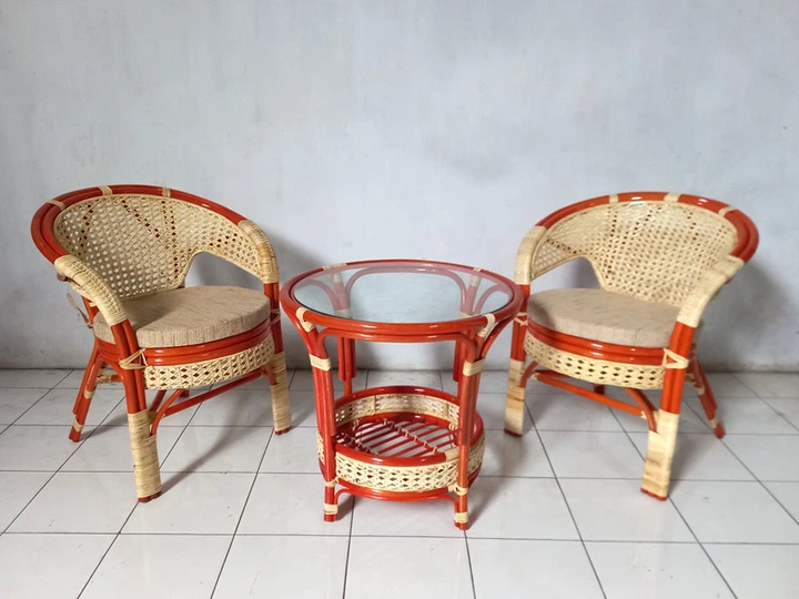 Кавовий комплект меблів з натурального ротанга 2 крісла та столик