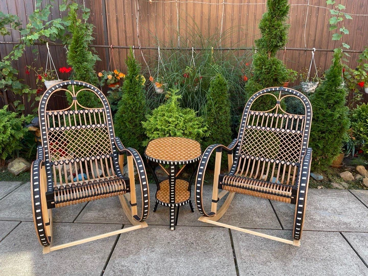 Крісло-гойдалки гойдалки зі столом плетені з ротангу коричневий (0095)