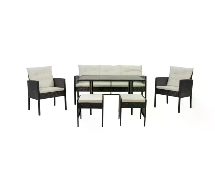 Набір садових меблів Garden Line SAD9583 з ротанга, чорний, диван, 2 крісла, 2 пуфи, стіл зі склом