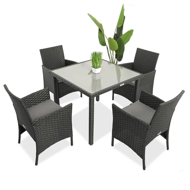 Набір садових меблів Just Relax Big Family 4 90х90 Графітового кольору з Ротангу зі сталевим каркасом (Стіл, 4 Крісла)