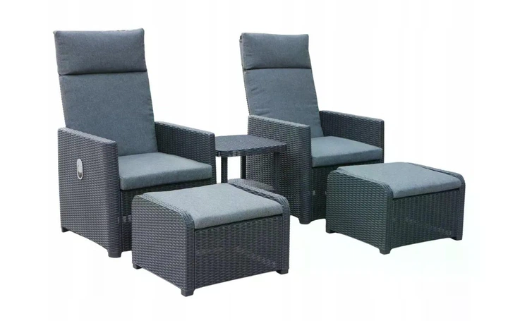 Комплект садових меблів Garden Line,набір LYON ZUM6430 столик, та два крісла з підніжками, колір антрацит