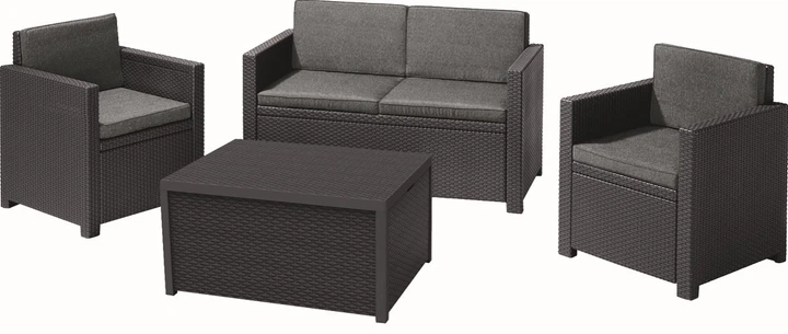 Комплект садових меблів Keter Monaco сірий набір для відпочинку на вулиці з подушками та столом-скринею (532805)