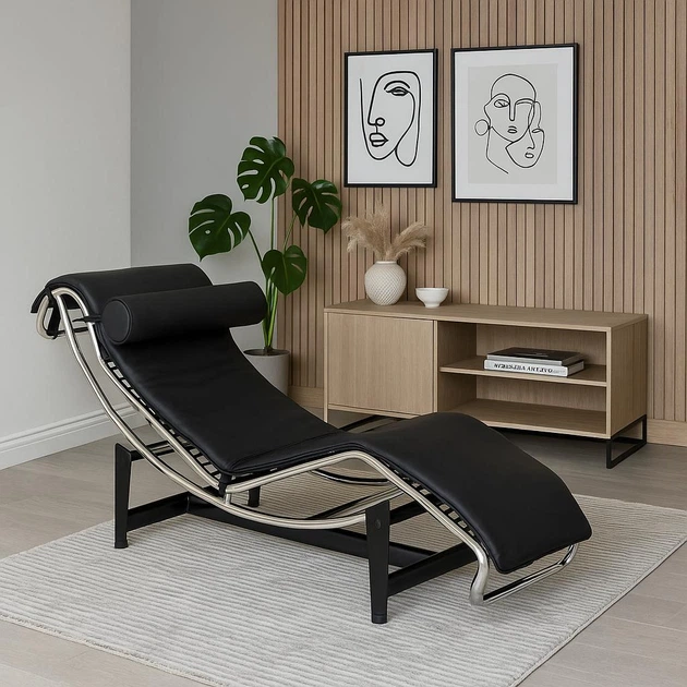 Шезлонг Лекор шкірозамінник, нержавіюча сталь, чорний