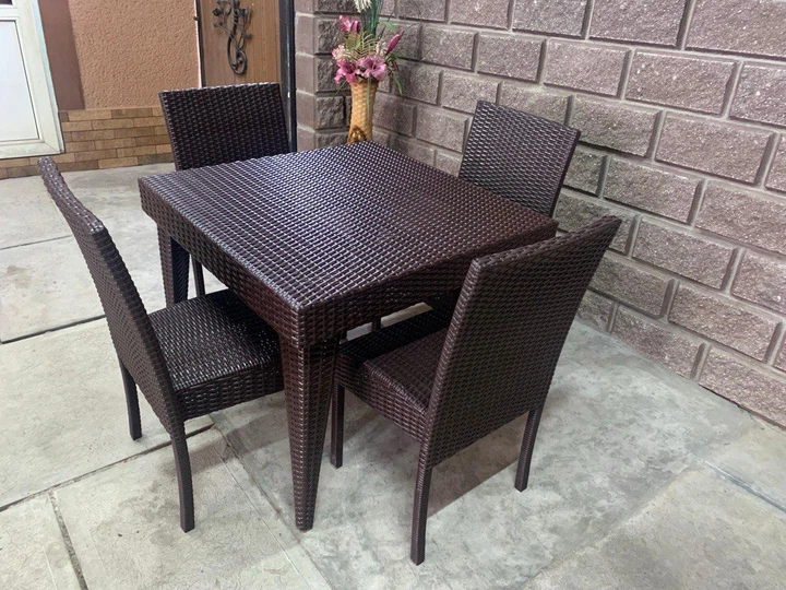 Комплект меблів для саду з дерева та лози диван + 2 крісла Стандарт + стіл прямокутний Woody Коричневий + Бордовий